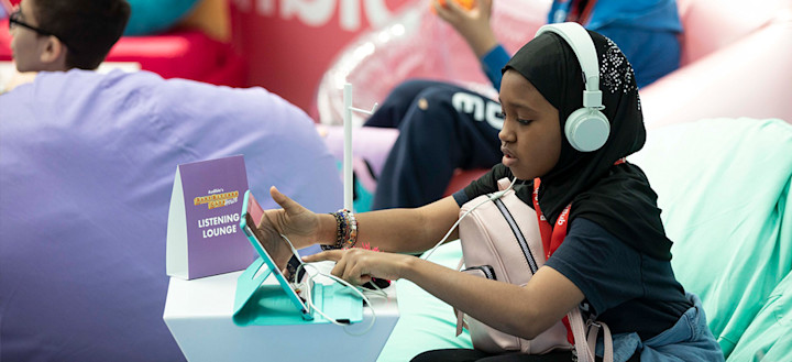 The series’ author, Ann M. Martin, hung out in the clubhouse signing custom notebooks and tote bags for visitors after her panel discussion, “The Baby-Sitters Club: The Ultimate Throwback and Flash Forward,” with three of the series’ narrators, Brittany Pressley, Bahni Turpin, Vanessa Johansson, and Kat Lambrix, Senior Director of Audible Studios. The panel was moderated by Diana Dapito, Audible’s SVP of Content, and was packed with fans of the series. Many of them shared that they had read the series as children and were now introducing their children to it, proving that while The Baby-Sitters Club’s characters might use landlines rather than cellphones, the series tackles enduring themes like divorce, death and dealing with conflict.