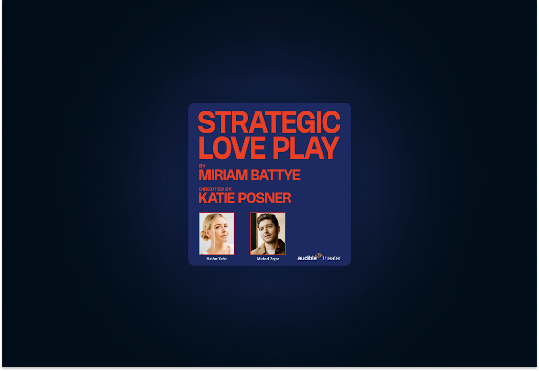 Kate Navin, Audible Head of Creative Development, North America, said: “After acclaimed, sold-out runs in Edinburgh and London, we’re thrilled to give Miriam Battye’s Strategic Love Play its New York premiere. Heléne Yorke and Michael Zegen along with the collective brilliance of our creative team led by Katie Posner are the perfect matches to bring this sharp comedy to theater-goers at Audible’s Minetta Lane and later to listeners globally on Audible. This is exactly the kind of timely work that we’re devoted to offering audiences for captivating live theater and audio experiences.”